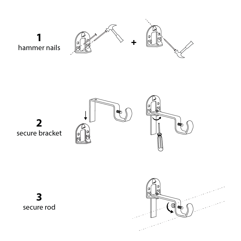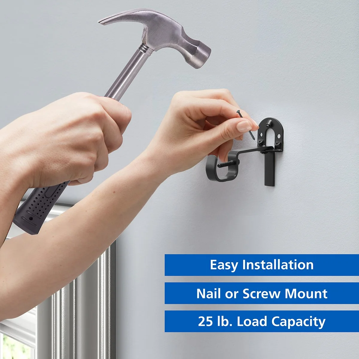 Hanging your curtain rods has never been easier with SwiftSet® no-drill, tap-in brackets. Designed for quick and hassle-free installation, these brackets let you style your windows in minutes. Made from sturdy steel, they support up to 25 pounds and come with all necessary anchors and screws for a standard installation.